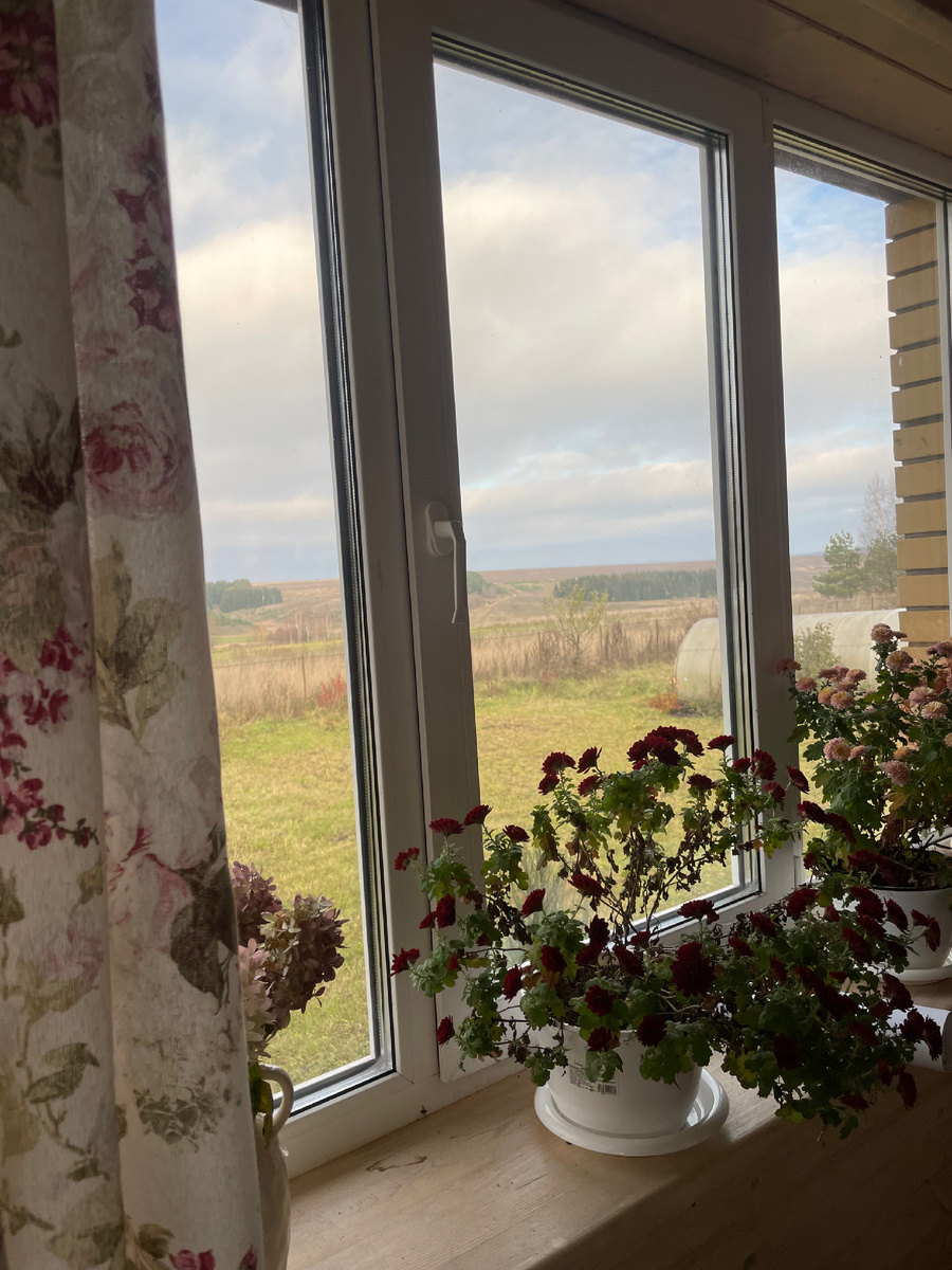 Дописала. За окном серо, сыро и прохладно, но я всё равно вышла на улицу — воздух бодрит. Нужно было занести цветы в дом: всё лето они жили на террасе, потом перекочевали в неотапливаемое помещение, но теперь холода наступают всерьёз. Пусть зимуют в доме, в тепле.