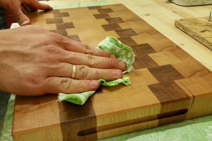 Натуральные масла (льняное, тунговое) тоже подходят, но важно убедиться, что они пищевые и не будут выделять вредных веществ. Налейте немного масла на поверхность