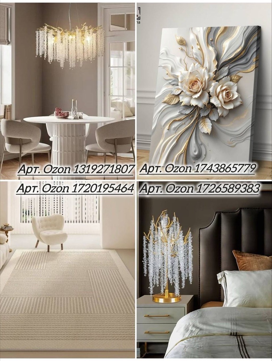 Интерьер взрослеет не от дорогого ремонта, а от точных акцентов — света, фактур, силуэтов и малых форм. Я собрала для вас двенадцать предметов из одной эстетики: мягкое золото, молочные оттенки, стекло, мрамор и благородные линии. Идём строго по порядку, как на фото: артикул — подробное описание — совет стилиста. С таким списком вы легко соберёте цельную и очень уютную картину дома.