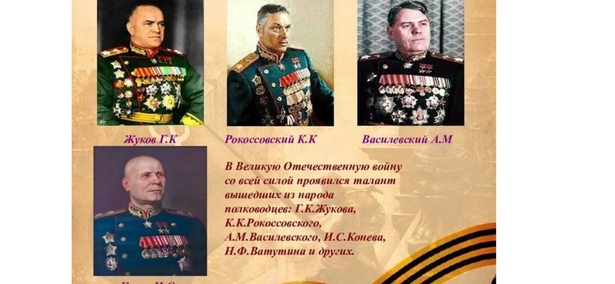 Полководцы Великой Отечественной войны: Путь к Победе Великой Победы Советского Союза в годы Великой Отечественной войны удалось достичь не только благодаря безграничному мужеству и стойкости простых солдат и командиров Красной Армии, но и мудрым действиям гениальных военачальников, которые смогли грамотно организовать действия вооруженных сил и мобилизовать все ресурсы огромной страны для сокрушения общего врага. Георгий Константинович Жуков Георгий Константинович Жуков начал свой путь как заместитель народного комиссара обороны еще задолго до начала боевого противостояния с фашистской Германией. Именно ему принадлежит заслуга разработки стратегии быстрых ответных мер, которая помогла стабилизировать ситуацию в первые месяцы тяжелейших сражений. Одним из наиболее значимых событий, произошедших под руководством этого великого полководца, было знаменитое московское контрнаступление советской армии зимой 1941–1942 годов, ставшее первым крупным поражением немецких войск и переломивш