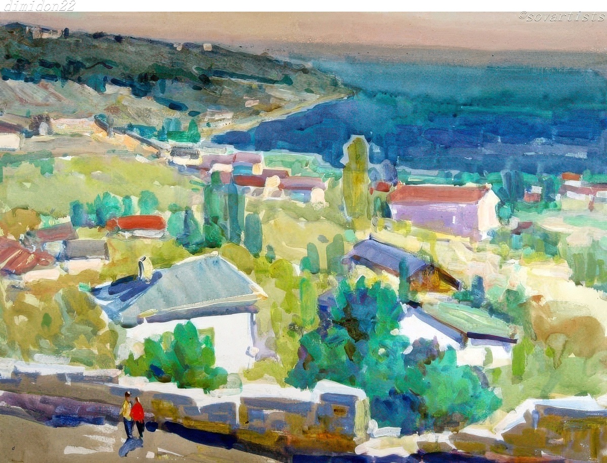 Сарафанова-Легат Клавдия Фёдоровна (20.06.1911, Москва - 1989, там же). «Крым. Симеиз. Осенний денек». 1972 год. Бумага, акварель, гуашь, белила; 500 х 630 мм.; (Историко-этнографический музей-заповедник «Шушенское»).