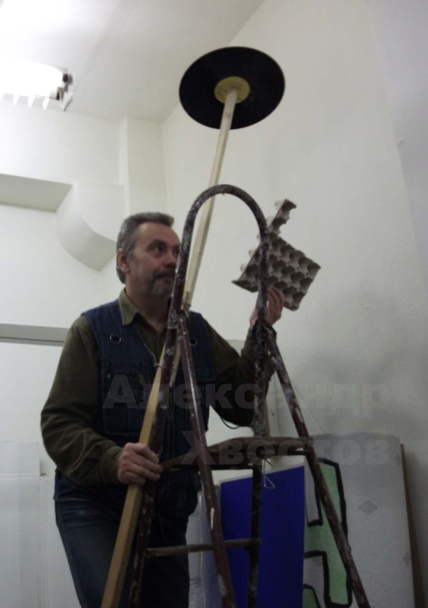 Можно подумать, что я приготовил какое-то оборудование для циркового трюка, но это не так... Это приспособление для приклеивания яичных клеток к потолку. Ведь всем известно, что помещение, где записывается звук или ведётся звуковая видеосъёмка, должно быть максимально лишено эха, а для этого во всех книжках для любителей магнитной записи рекомендовалось использовать клетки из под яиц Чтобы в этом убедиться, достаточно полистать книгу "Мой друг магнитофон" Не верите? Убедитесь сами, долистав до страницы 129