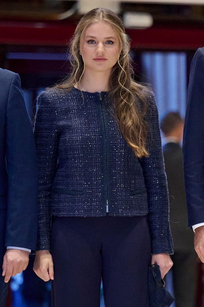 В преддверии одного из самых значимых событий в календаре испанской королевской семьи, вручения наград Фонда принцессы Астурийской, монаршая чета вместе с дочерьми прибыла в Овьедо. Вечером они посетили традиционный концерт в Конгресс-холле имени Принца Фелипе, который всегда предваряет главную церемонию. Как и ожидалось, все взгляды были устремлены на принцессу Леонор, чей безупречный и элегантный наряд стал очередным подтверждением ее стилистической эволюции в сторону более взрослого и делового имиджа. В последнее время для официальных мероприятий наследница престола все чаще отдает предпочтение нейтральной и сдержанной палитре – белому, черному и темно-синему. Последний, по всей видимости, стал ее фаворитом, как и у ее матери, королевы Летисии. Эксперты в области имиджа отмечают, что этот оттенок ассоциируется со спокойствием, уверенностью и профессионализмом. Он универсален, элегантен и подходит как для дневных, так и для вечерних выходов, являясь идеальным выбором для женщины, стр