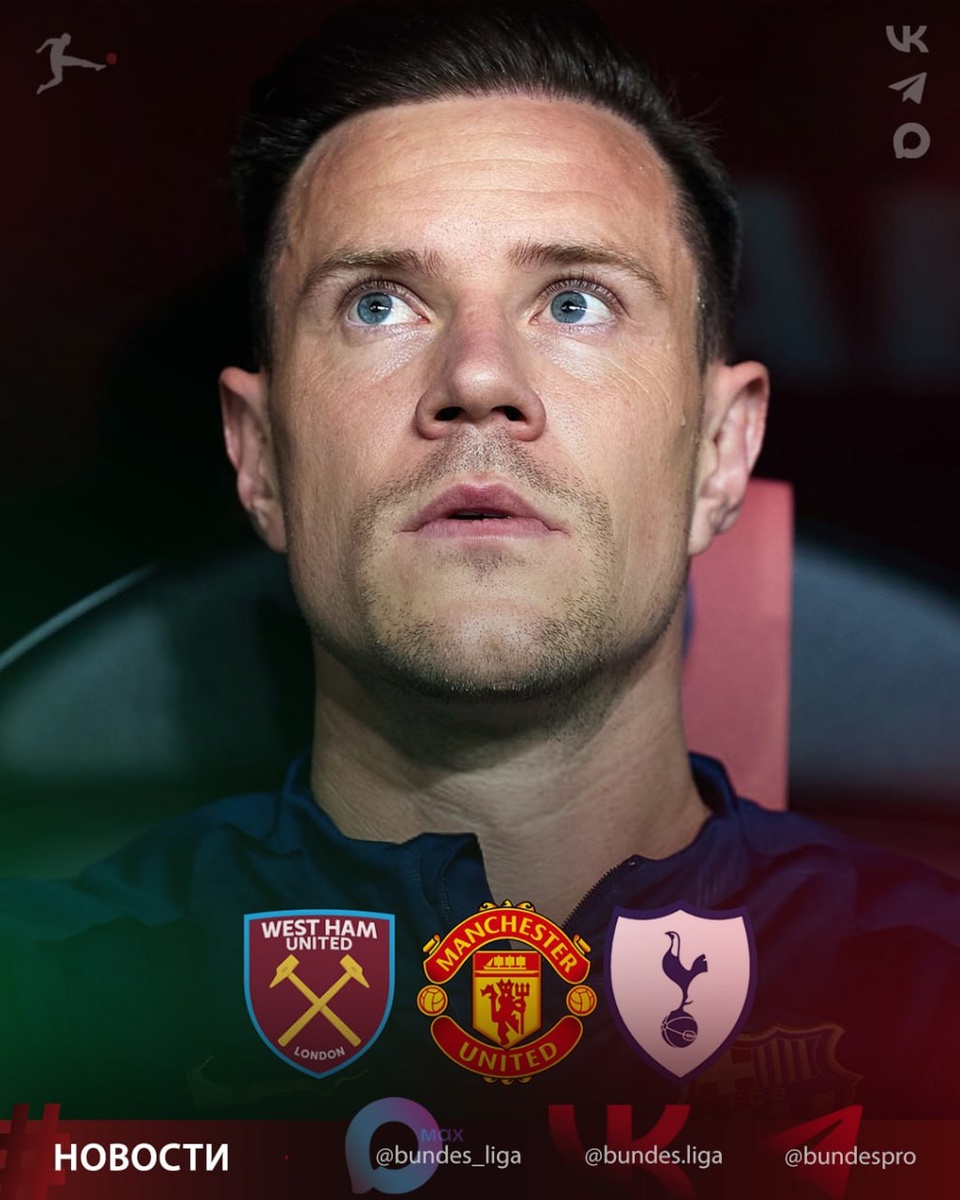 🔥 Три клуба АПЛ хотят арендовать тер Штегена в январе! «Манчестер Юнайтед», «Тоттенхэм» и «Вест Хэм» - проявляют интерес к подписанию арендного соглашения с вратарём «Барселоны» Марком-Андре тер Штегеном с возможностью последующего выкупа. ⚡️Руководство каталонского клуба рассматривает вариант продажи 33-летнего голкипера, так как хочет омолодить состав и попробовать в роли основного вратаря Жоана Гарсию. По данным TBR Football, «Барселона» готова одобрить аренду тер Штегена в январе. Также на днях стало известно, что интерес к голкиперу проявляет «Ньюкасл». ⭐️ MAX /// Видео+ ❤ Телеграм /// Аналитика+ ✅️ Флагманская /// Новости+