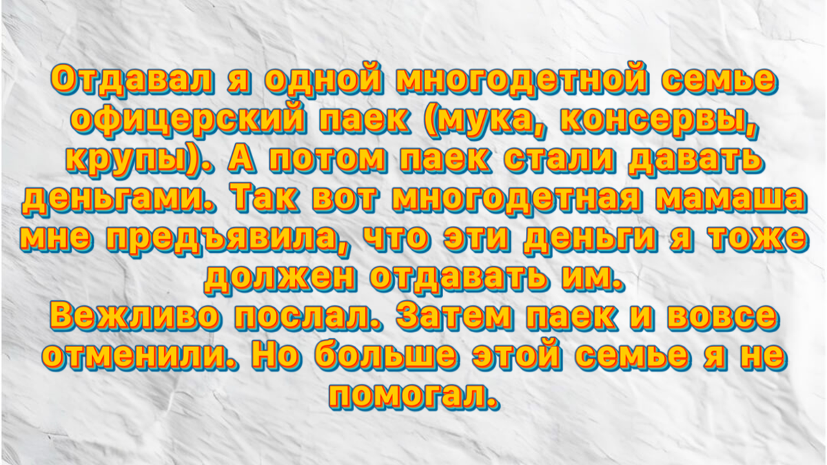 Моя подруга увидела объявление о продаже дешевых памперсов, где на фото были запечатлены целые коробки. Она позвонила узнать, откуда такой объем. Мужчина на том конце провода спокойно ответил, что его жена работает в детском доме... Подруга пожелала, чтобы у него ничего не купили, и бросила трубку.
