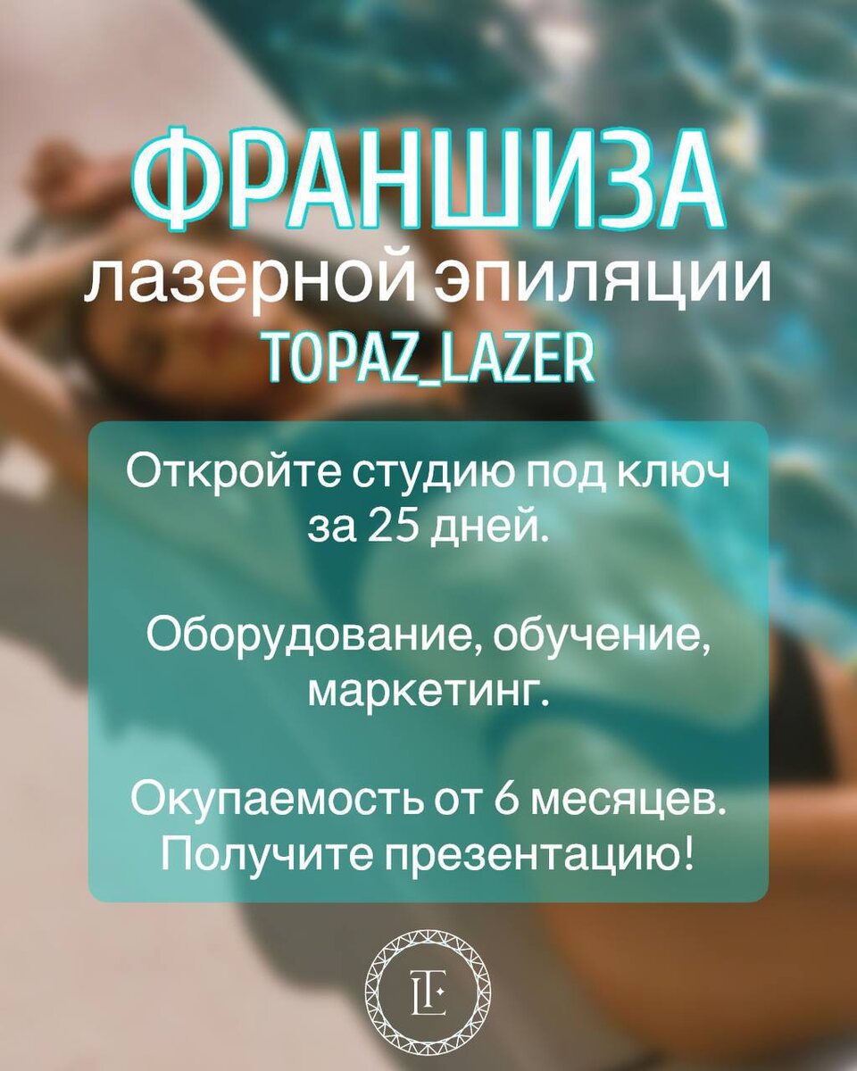 Мечтаете о своем бизнесе, который не будет отнимать все время? 🤯 Откройте его всего за 25 дней! ☝🏻 Мы создали франшизу лазерной эпиляции, которая превращает вашу идею в успешный бизнес под ключ быстрее, чем вы думаете. Всего за 25 дней с «нуля» до первого клиента! ⚡ Что входит в наш пакет «Под ключ»: 🩵 Профессиональное оборудование. Вы получаете проверенные и эффективные лазерные аппараты премиум-класса. Никаких лишних закупок и поисков. 🩵 Полное обучение “с нуля”. Мы научим вас и ваших сотрудников всем тонкостям работы: от технологии до ведения клиентов. Опыт в красоте не обязателен! 🩵 Готовый маркетинг. Вам не придется ломать голову над рекламой. Вы получаете: бренд-бук, готовые рекламные макеты, настройку таргетированной рекламы и работающие скрипты продаж. 💰 Финансовая цель: окупаемость от 6 месяцев. Мы строим эффективную бизнес-модель, где вы сосредотачиваетесь на клиентах и прибыли, а не на решении бесконечных проблем. Хотите узнать все детали и увидеть цифры? Пиши