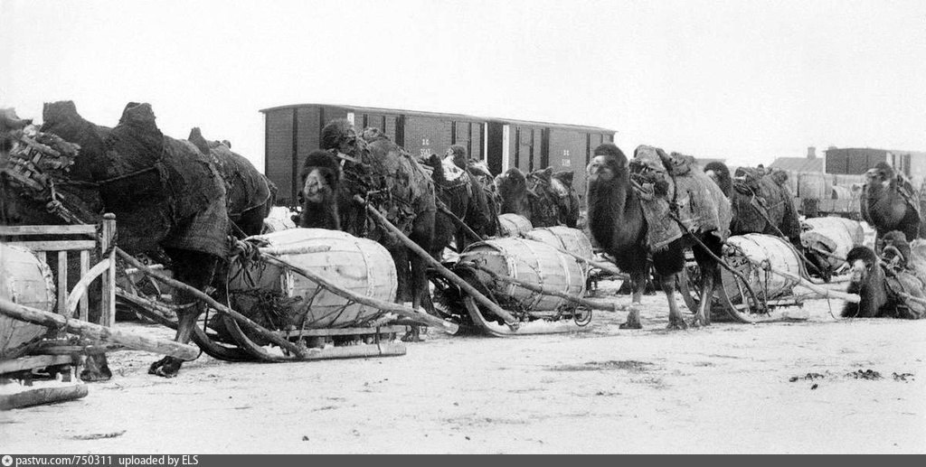 Доставка товаров на станцию Курган из степного края на верблюдах Описание: Выставка «Ворота в Сибирь или Зауральский Чикаго» 1892—1898, Россия, Курганская область, Курган https://vk.cc/cQJ7Sh