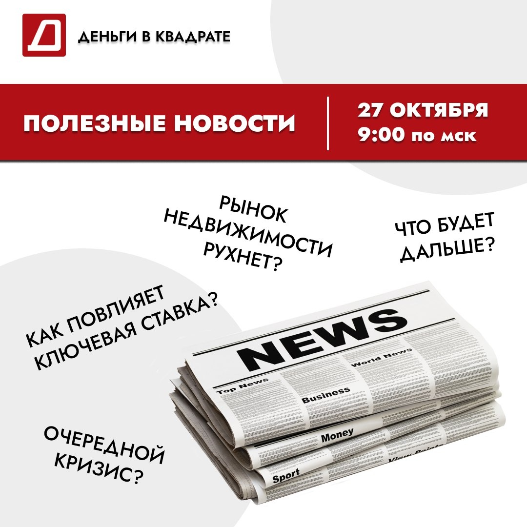 🗞 ПРЯМОЙ ЭФИР "ПОЛЕЗНЫЕ НОВОСТИ" | СЕГОДНЯ В 9:00 ПО МСК Каждую неделю мы разбираем самые важные новости, которые влияют на инвестиции, недвижимость и финансовые рынки. Всего 25–30 минут — и вы в курсе того, что реально важно. Мир вокруг нас постоянно меняется, и чтобы принимать правильные решения, важно понимать, что происходит и как это может отразиться на ваших вложениях. 📌 В сегодняшнем эфире обсудим: ▫️Ключевая ставка 16,5% ▫️Объем образовательных кредиторов в Тюменской области вырос на 67% за год ▫️Госдума в первом чтении приняла повышение НДС до 22% ▫️Вводится новый порядок учета и погашения долгов по налогам ▫️У брокеров появятся новые обязанности ▫️От 13 до 18 лет: названы сроки окупаемости арендных квартир в мегаполисах ▫️Росреестр разъяснил порядок расчета госпошлины при сделках с жильем ▫️Названы мегаполисы, где машино-место окупится быстрее всего в 2025 году ▫️57% россиян воспринимают социальные платформы, онлайн-магазины, контентные сервисы и маркетплейсы как простра