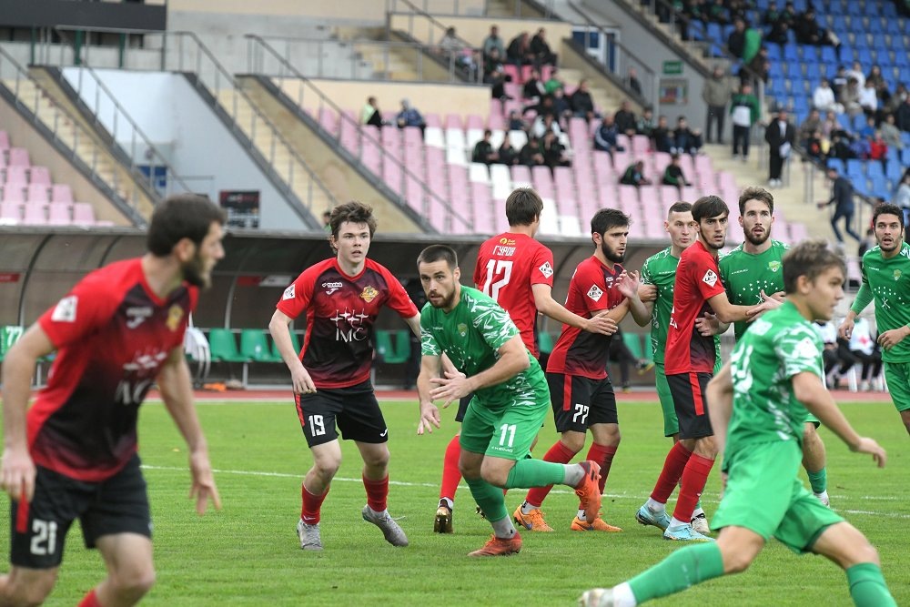 Майкопская «Дружба» в 6-м, предпоследнем туре первенства Второй лиги в подгруппе 1Б не оставила шансов махачкалинскому «Легиону», разгромив клуб из столицы Дагестана на своем поле со счетом 3:0. Это четвертая победа «Дружбы» подряд, команда на втором месте – идущая первой «Астрахань» тоже одержала победу – волжане обыграли ялтинский «Рубин» на своем поле. У «Астрахани» 52 очка, у «Дружбы» 50. Майкопчане сняли все вопросы еще в первом тайме, забив три безответных мяча. Сначала Гаджимурад Абдуллаев реализовал пенальти, спустя несколько минут он сделал дубль, а гол в раздевалку забил Кирилл Юшко. На послематчевой пресс-конференции главный тренер «Дружбы» Сергей Мирошниченко поблагодарил футболистов за игру, отметив, что ребята выполнили поставленную задачу. Он также выразил признательность всем болельщикам, которые поддерживают любимую команду. Заключительный тур первенства «Дружба» проведет в Назрани, где сыграет с «Ангуштом». Матч состоится 1 ноября. По ходу матча «Дружба» – «Легион» п