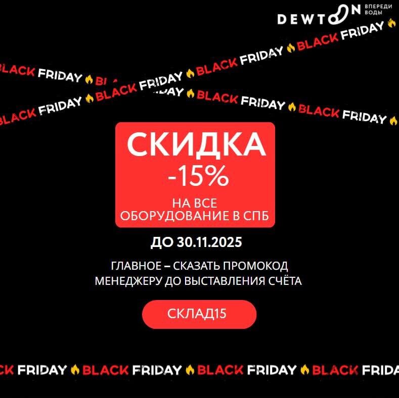 🔥 РАСПРОДАЖА ОБОРУДОВАНИЯ В САНКТ-ПЕТЕРБУРГЕ! Скидка 15% на всё оборудование со склада в СПб! Поспешите — количество товара ограничено, акция действует до 30 ноября 2025г. 💧Колонны, клапаны, загрузки — всё, что нужно для систем водоочистки, по выгодной цене. Чтобы получить скидку, назовите промокод “СКЛАД15” своему менеджеру ДО выставления счёта. 📦 Это отличный шанс купить систему по цене на 15% ниже, чем в сезон! Для заказа пишите нам в сообщения @Dewton_market #dewton #водоочистка #распродажа #скидка #оборудование