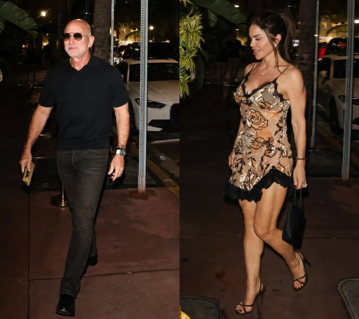 Безос, как всегда, сдержан: чёрное поло, тёмные джинсы, солнцезащитные очки. Просто, но выверено. Кажется, он знает, что рядом с такой женщиной больше ничего не нужно.