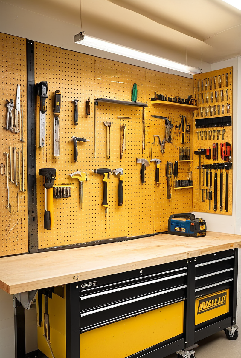Оптимизация пространства: настенная полка‚ перфорированная панель‚ регулируемые полки и кронштейны для инструментов
