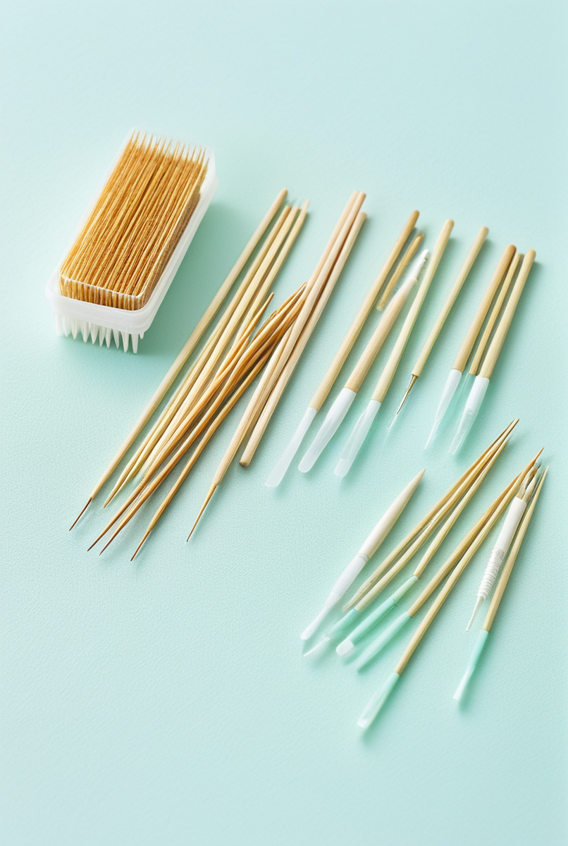 Если вы все же предпочитаете зубочистку, отдавайте предпочтение видам с щадящей конструкцией и формой. Зубочистки из силикона или мягкого пластика с гибким дизайном безопаснее для десен, чем дерево или металл, которые при неправильном применении могут травмировать. Бамбук предлагает экологичные и биоразлагаемые одноразовые варианты, но требует аккуратности. Для многоразовых из металла важна регулярная стерилизация.