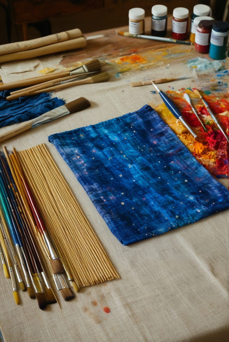 Для батика и техники свободной росписи нужны кисти для росписи и трафареты. В холодном батике используют резервирующий состав. Горячий батик требует воска. Узелковый батик уникален. Подготовка ткани критична. Закрепление рисунка — ключевой этап для стойкости цвета.