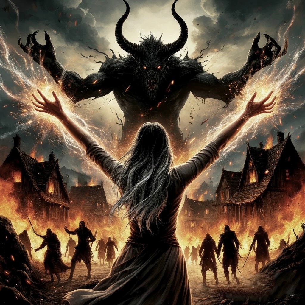 -Так, по одному я выследила и убила ещё одну тварь.- продолжил голос.-Осталось двое. Самый главный, и его приспешник. Я была одержима охотой, и в те дни дома почти не находилась. И не знала о том, что творилось в деревне и о пропаже девочки. Каково же было моё удивление… В ночь перед тем, как всё случилось, я смогла выследить третью тварь. Мы сражались долго, и я получила серьёзные ранения, но смогла победить. Я шла домой, полностью без сил, едва переставляя ноги, и думала лишь о том, что если мне сейчас придётся сражаться- я труп! И представь, что я испытала, когда, подойдя к своему дому, увидела во дворе толпу озверевших селян!