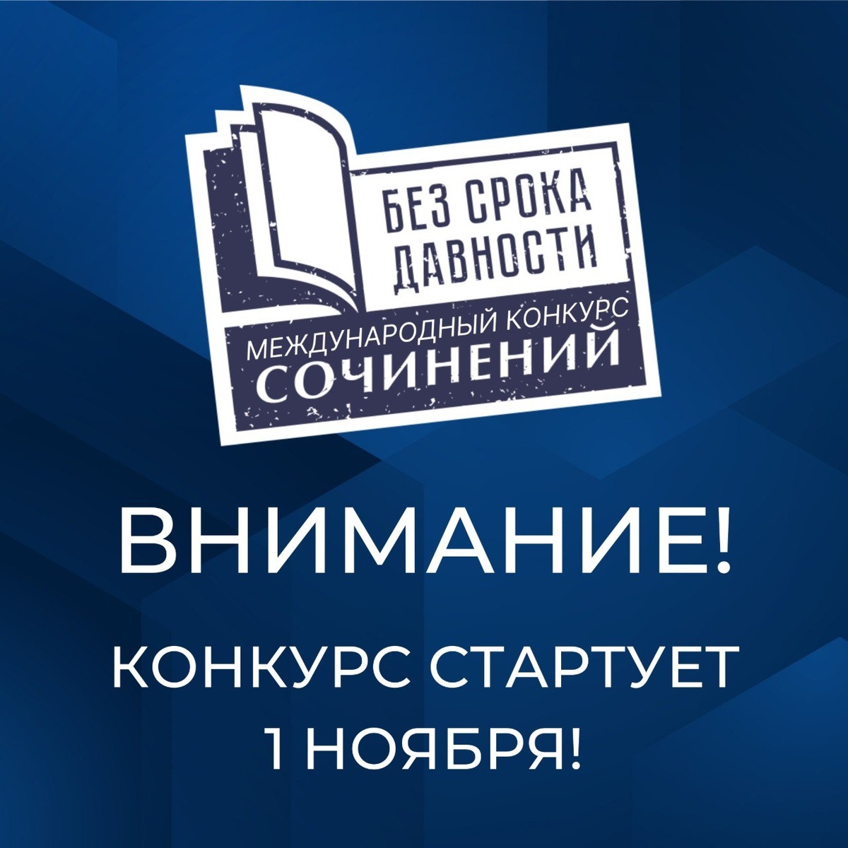 Сохраним историческую память о жертвах военных преступлений нацистов и их пособников в годы Великой Отечественной войны 1941–1945 годов! 1 ноября 2025 года стартует Международный конкурс сочинений «Без срока давности». В конкурсе примут участие обучающиеся 5–11 классов и студенты колледжей и техникумов всех регионов Российской Федерации, зарубежных стран, заграншкол МИД России. К конкурсу присоединятся ребята из Артека, Орленка, Океана, Смены. До 19 января 2026 года школьники и студенты напишут сочинения, в которых расскажут о военных преступлениях против человечности в годы Великой Отечественной войны 1941–1945 гг. Торжественный старт конкурса будет дан во Всероссийском детском центре «Океан». Участники конкурса с Дальнего Востока, Камчатки, Магаданской области раньше других начнут Марафон Международного конкурса сочинений «Без срока давности», который поддержат все регионы Российской Федерации.