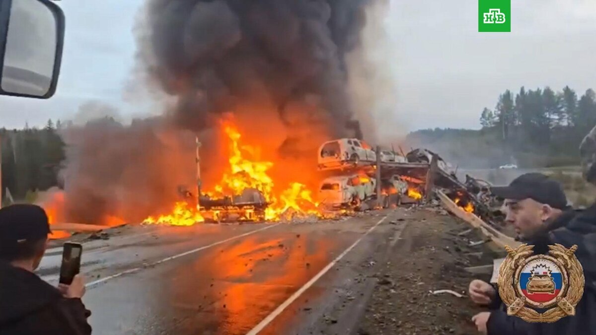 [ Смотреть видео на сайте НТВ ] Массовое ДТП произошло в Иркутской области. Как сообщили в ГУ МВД Приангарья, авария произошла на 1325-м километре федеральной автодороги Р-255 «Сибирь» в районе поселка Камышет Нижнеудинского района. По данным прокуратуры Иркутской области, произошло столкновение большегрузов, два из которых загорелись. Информации о пострадавших нет. Обстоятельства произошедшего устанавливаются. [ Смотреть видео на сайте НТВ ]