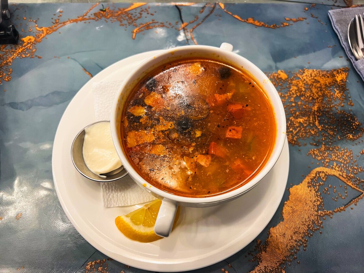 Единственное кафе в городе, куда не страшно зайти, как и поесть. Название наталкивает на мысли, что солянка здесь должна быть топовой, но нет. Обычная, как и пельмени. Но голодными не останетесь, а это порой главное.