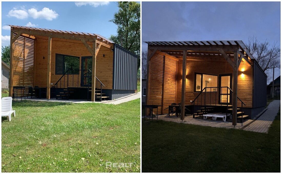 В деревне, что стоит на берегу реки Западная Березина, продается каркасный дом-студия — в одном пространстве разместились кухня, гостиная и спальня. Дом подойдет и для круглогодичного отдыха. Участок немаленький, но ухоженный. Показываем, как выглядит. Каркасник в деревне Рудники построили в 2021 году. Это Воложинский район. Его площадь — 36 квадратных метров. На крыше лежит металл. Дом идет с небольшой террасой. Внутри сделан ремонт: все отделано деревом, обустроено несколько зон. Имеется кухонный гарнитур с бытовой техникой, зона отдыхом с телевизором, в кармашке стоит кровать. Санузел — совмещенный, с душевой кабиной. В доме висят конвекторы для отопления. Вода поступает из скважины, а канализация здесь местная. Участок занимает 20 соток. Он огорожен, с газоном. Тут есть деревья и обустроена зона отдыха у самого дома. Рядом протекает Западная Березина. С другой стороны простирается лес. Относительно недалеко находится железнодорожная станция «Ластоянцы». Стоимость дома — 48 тысяч до