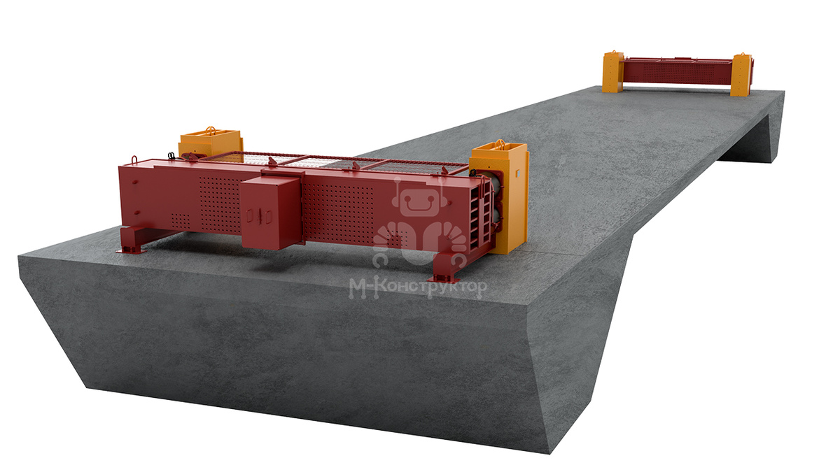 Завод «М-Конструктор» изготовил систему натяжения с усилием 800 тонн, предназначенную для работы в составе формующего стенда по производству преднапряжённых железобетонных изделий. Конструкция спроектирована с учётом требований к точности, надёжности и безопасности натяжения арматуры, обеспечивая стабильные параметры в процессе формования.