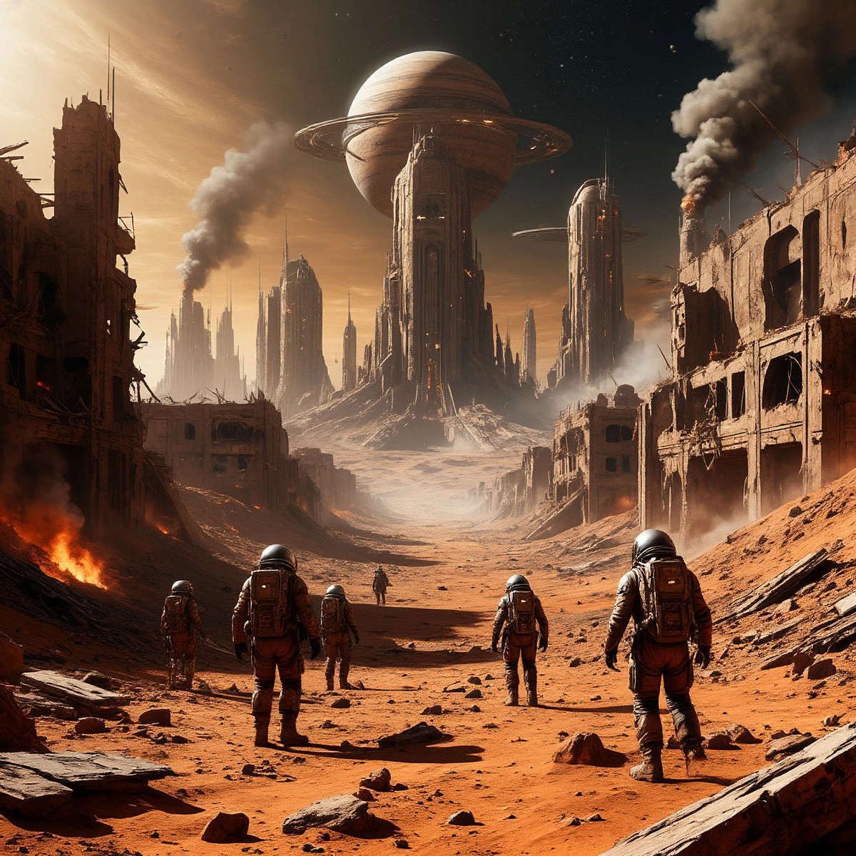 Над израненной поверхностью Марса повисла неестественная тишина, нарушаемая лишь воем пылевых бурь, поднятых чудовищными взрывами. Атмосфера, и без того разреженная, была отравлена радиацией и пеплом. Города, еще несколько часов назад полные жизни, теперь представляли собой дымящиеся руины, испещренные оплавленными кратерами. Небо прорезали синие траектории входа в атмосферу — это десантные капсулы синтетиков, похожие на гигантские металлические семена, падали на планету, не встречая никакого сопротивления.