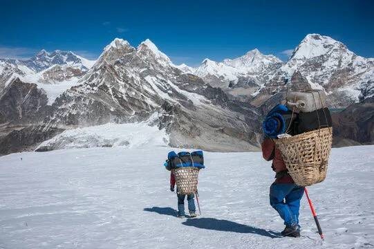 Они не просто носильщики. Они первыми поднимаются и доставляют тонны снаряжения, продуктов и кислородных баллонов на высоту до 8000 метров. Каждый из них тащит около 25-30 кг груза за раз в той местности, где кислорода в воздухе меньше 40% от нормы. Именно шерпы прокладывают путь через опасные ледопады и устанавливают верёвки, по которым поднимаются альпинисты. А ещё, как признаются многие альпинисты, именно спокойствие, оптимизм и сила духа сопровождающих шерпов часто являются решающим фактором для успеха экспедиции.