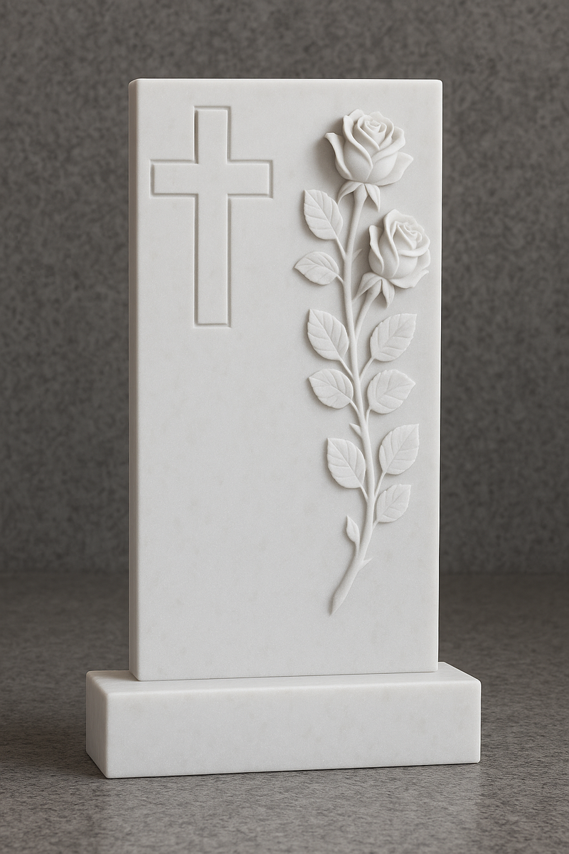 Розы, как воплощение вечной любви и памяти, становятся идеальным дополнением к строгому кресту. Их плавные линии и нежные формы создают гармоничный контраст с геометрией камня, превращая памятник в произведение искусства. В этом сочетании отражается вся гамма чувств: от глубокой скорби до светлой памяти о любимом человеке.
