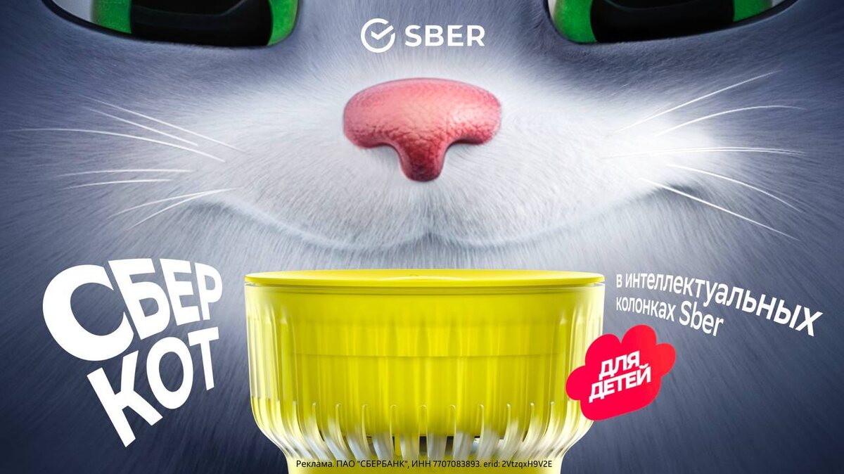 В умных колонках Sber поселился «СберКот» Это умный друг и помощник для детей, который говорит с ними на одном языке. Персонаж включит весёлую музыку, почитает сказку на ночь, запустит увлекательные игры и даже сможет помочь с домашним заданием. Можно попросить провести исследование на любую интересующую тему или объяснить сложное простыми словами. Чтобы включить персонажа, просто скажите: «Салют, позови СберКота!»