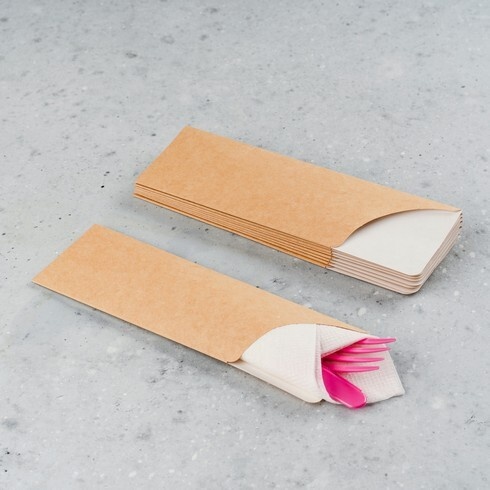 Задуматься о необходимости предлагать клиентам конверты для столовых приборов (куверты) могут практически все владельцы точек быстрого питания на фудкортах и в сфере доставки. Но лишь самые дальновидные применяют эту возможность и выигрывают. К ним больше доверия, выше покупательский спрос, ощутимо расширение целевой аудитории и тенденция роста продаж. Куверт несомненно способствует успеху. Он демонстрирует аккуратность, высокий уровень сервиса, уважение к посетителям и потребителям услуг. Может вмещать один индивидуальный комплект или несколько на большую компанию. Продолговатая форма удобно фиксирует и удерживает приборы внутри, скошенный край открытой горловины позволяет легко извлечь ножи, вилки, ложки, палочки для суши. Упаковка сама собой организовывает красивую ресторанную подачу блюд, упорядочивает процесс приема пищи, обеспечивает свободное пространство на столе. Выполненная из экологически чистого пищевого картона, гарантирует чистоту и безопасность. Цвет внутри белый, ассоц