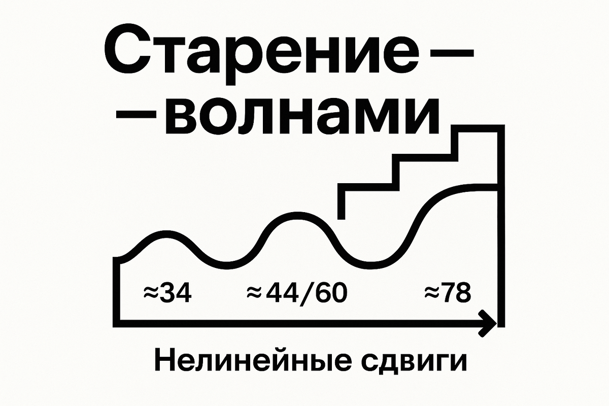 — Протеомика плазмы (2019): выявлены «волны» изменений около 34, 60 и 78 лет, подтверждая, что темп старения меняется ступенчато. PMC