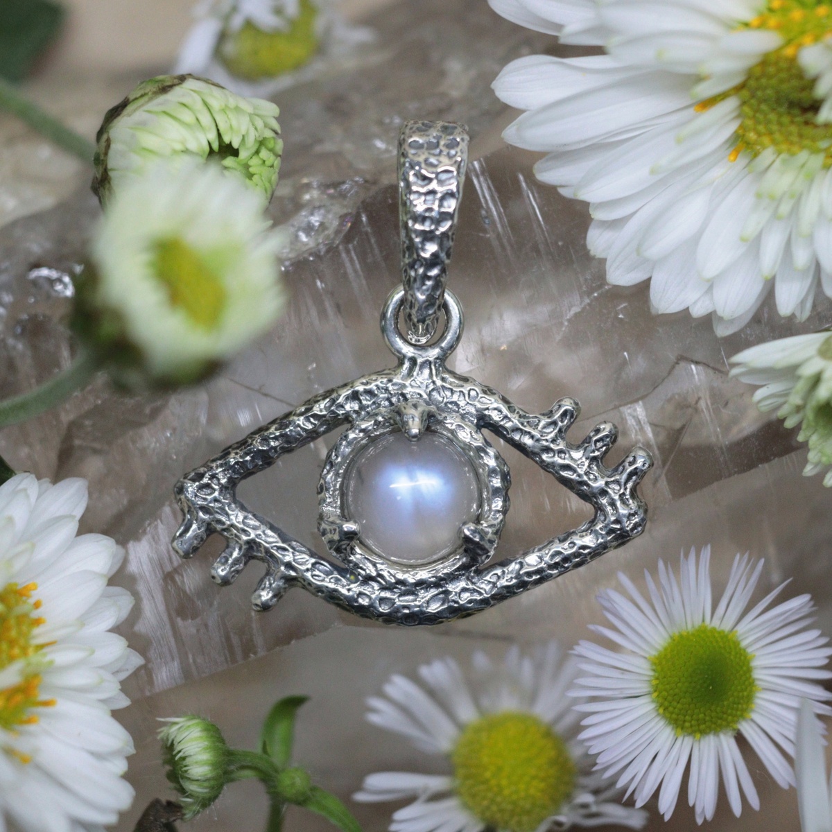 Один из самых популярных кулонов нашей мастерской снова в наличии! Загадочный, сияющий, туманный, он завораживает переливами лунного камня и радует глаз фактурой, которую мы назвали "Лунная поверхность". Такой простой, но при этом хранящий сложный смысл, кулон "Глаз" будет неустанно взирать на окружающий мир, оберегать своего владельца от любого зла и помогать в познании тайн и самосовершенствовании. Глаз - древний символ, богатый глубокими значениями. Он воплощает мудрость, знание, уверенность в себе, независимость, духовность и магическую энергию. Глаз символизирует ясный, беспристрастный взгляд, поиск истины, стратегическое мышление, самосовершенствование и творческий рост. Его изображение часто служит оберегом, защищающим от недобрых взглядов, сглаза, порчи и негатива. Лунный камень связан с Луной и лунным циклом. Он усиливает и раскрывает природные таланты, взаимодействует с миром снов, чувствами, ощущениями и эмоциями. Лунный камень приносит в жизнь мягкие, спокойные энергии, улу