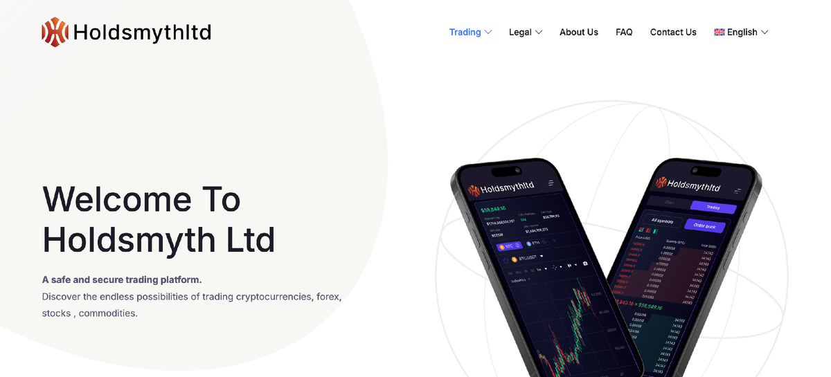 Проект Holdsmyth Ltd, представленный на сайтах Holdsmythltd.com и Platform.holdsmythltd.com, активно продвигает себя как «международную инвестиционную компанию» с возможностью торговли на форексе, криптовалютных биржах и фондовом рынке.