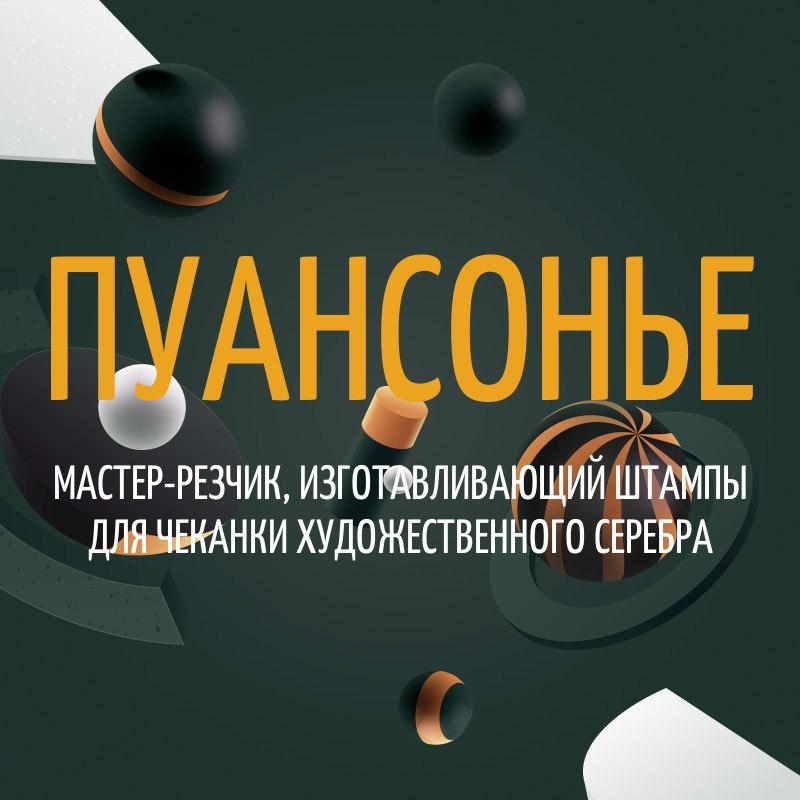 ПУАНСОНЬЕ Мастер-резчик, изготавливающий штампы для чеканки художественного серебра Пуансонье — это специалист, создающий металлические штампы (пуансоны), с помощью которых осуществляется художественная чеканка серебра и других металлов. Работа пуансонье требует исключительной точности: отзеркаленный рисунок на пуансоне превращается в тонкое рельефное изображение уже на серебряном изделии. История профессии уходит в XVII–XIX века, когда мастерство пуансонье ценилось наравне с гравёрами, особенно во Франции и России, где роскошные массивные блюда и кувшины украшались сложнейшими сюжетами. Каждый штамп — как тайная подпись мастера и залог индивидуального стиля мастерской. Именно поэтому, два на первый взгляд одинаковых серебряных подноса могут отличаться характером линий или мельчайшими деталями. Порой опыты незадачливых мастеров заканчивались курьёзами: в известных коллекциях встречались «ошибочные чеканки» — например, зеркально перевёрнутые инициалы заказчика или забавные искажения в