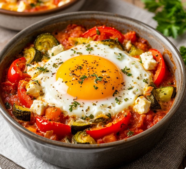 🌿 «Запечённые овощи с яйцом и фетой — ужин без плиты, с любовью» Бывают дни, когда даже включить плиту кажется подвигом.