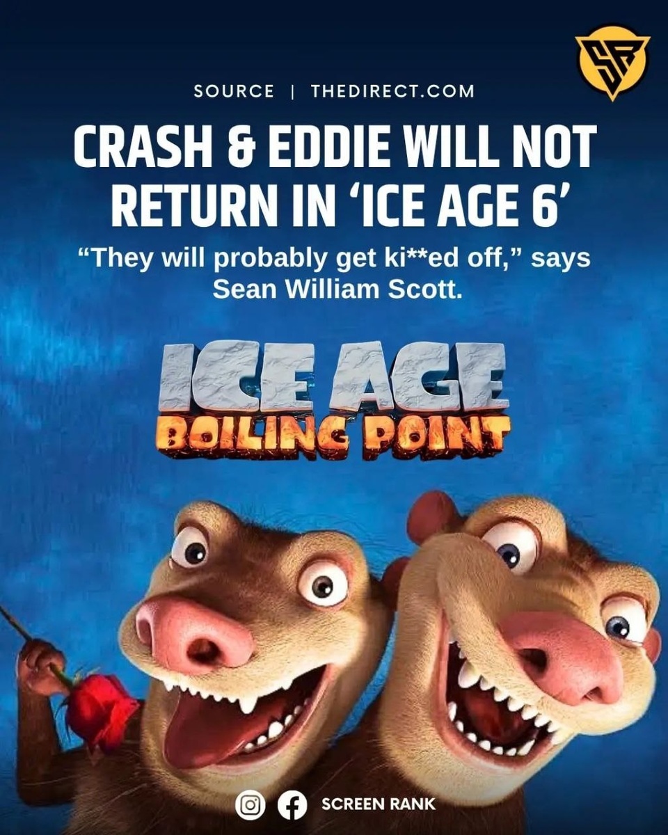 Крэш и Эдди не вернутся в Ледниковый период 6 (Ice Age 6). Два брата-опоссума появились во 2 фильме еще в 2006 году и очень быстро полюбились зрителям. Шон Уильям Скотт, который озвучивает Крэша, предположил, "что этих героев, вероятно, у*ьют". City Film🍿Подписаться