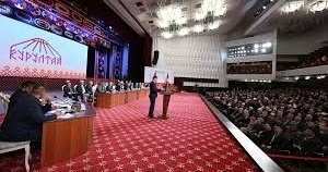 Президент Садыр Жапаров IV Народдук Курултайдын датасын 22-декабрдан 25-декабрга 2025-жылга жылдырган Указга кол койду. Указ расмий жарыяланган күндөн тартып күчүнө кирет. 📅 Президент Садыр Жапаров 2025-жылдын 20-октябрында № 291 Указга кол койду, бул Указ менен IV Элдик Курултайдын өткөрүлүү датасы өзгөртүлдү. 📆 IV Элдик Курултайдын өткөрүлүү датасы 2025-жылдын 22-декабрынан 25-декабрына жылдырылды. 📜 Указ Конституциялык Мыйзамдын «Элдик Курултай жөнүндө» 11-беренесине жана Кыргыз Республикасынын Конституциясынын 70 жана 71-беренелерине ылайык чыгарылды. 📰 Указ расмий түрдө жарыяланган күнү күчүнө кирет жана 2025-жылдын 21-октябрында «Эркин Тоо» гезитинин № 80 санында жарыяланган.