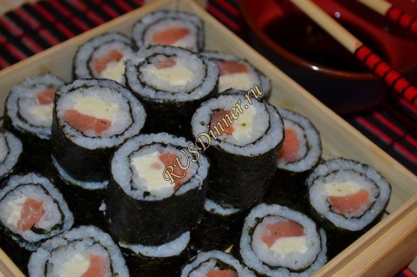 Роллы в домашних условиях От автора: Роллы в домашних условиях не получатся у Вас с первого раза, в них очень много деталей. Но если заниматься постоянно, то все станет легко и просто. Самый главный плюс приготовления роллов дома - это их количество. Ингредиенты: Рис в пакетиках - 2 шт. Листы морской капусты - 4 шт. Семга малосоленая - 150 гр. Сыр Хохланд плавленый - 100 гр. Источник: https://rusdinner.ru/page/rolly-v-domashnih-uslovijah