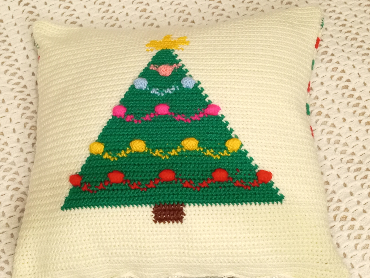 Новогодняя подушка крючком "Елочка" (мастер класс)