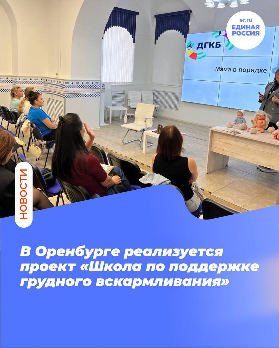 🔹Очередное занятие «Школы по поддержке грудного вскармливания» прошло в Штабе общественной поддержки «Единой России». 🔹Главная цель проекта–увеличить долю детей, находящихся исключительно на грудном вскармливании до шести месяцев, с сегодняшних 41 % до 61 %. 🔹Команда школы помогает мамам не только наладить процесс кормления, но и понять его ценность для здоровья малыша и самой женщины. За время работы проекта уже проведено девять семинаров. Мамы узнают о питании, психологическом состоянии и физических изменениях в послеродовом периоде. 💬Такая поддержка молодых родителей – это поистине инвестиции в будущее, не только в здоровье сегодняшних новорождённых, но и в поколения, которые придут следом за ними. Мы гордимся, что в нашей больнице рождаются и воплощаются в жизнь такие инициативы», – отмечает главный врач Детской городской больницы города Оренбурга Дмитрий Нефедов. 🔹Проект «Школа по поддержке грудного вскармливания» создан в рамках партийного проекта «Крепкая семья» и реали