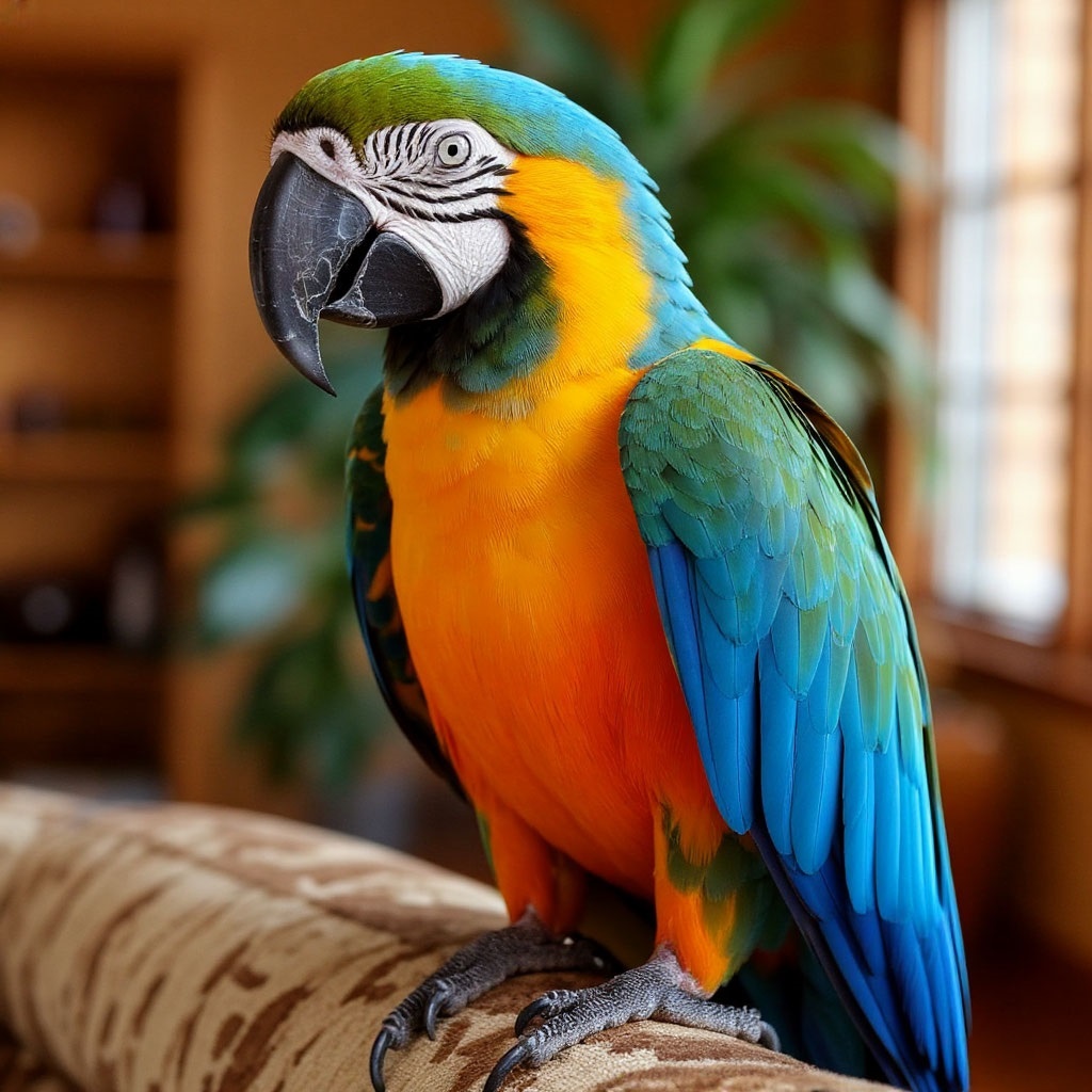- Освещение: Важно обеспечить попугаю правильное освещение, включая ультрафиолетовый спектр, который необходим для синтеза витамина D. Специальные лампы для птиц могут быть полезны, особенно в зимний период.