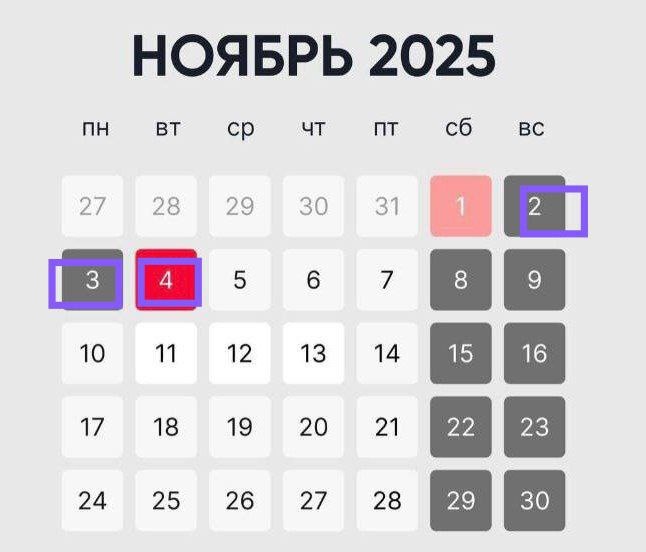 В России началась шестидневная рабочая неделя, которая продлится до 1 ноября. Затем последуют трехдневные выходные в честь Дня народного единства: 2, 3 и 4 ноября. 1 ноября рабочий день сокращен на 1 час.