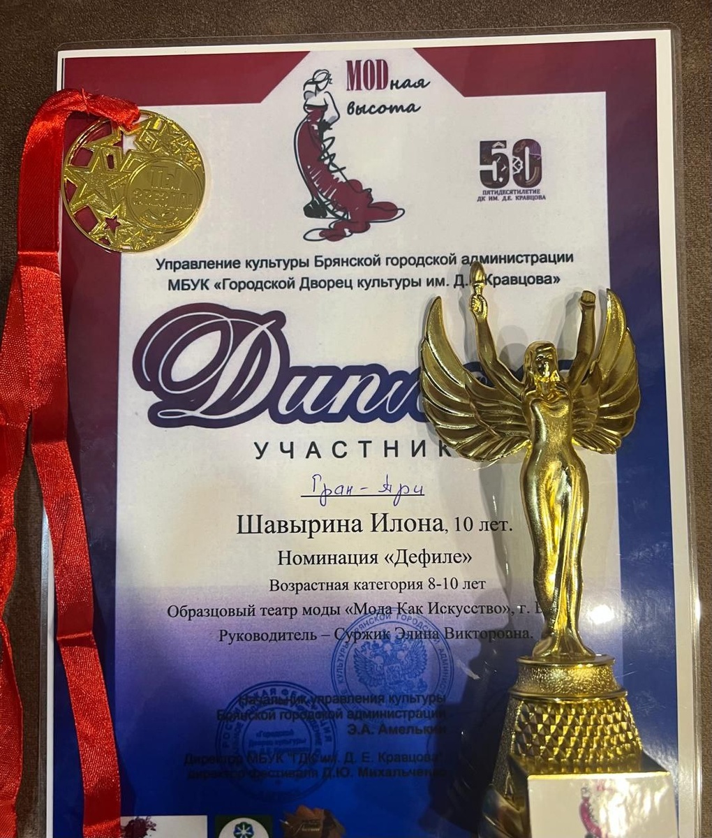 🎉🎉🎉Поздравляем Шавырину Илону с победой❤️🏆 - ГРАН-ПРИ в номинации "Дефиле" 👠(возрастная категория 8-10 лет) на Открытом международном конкурсе "МODная высота" (г.Брянск)📸👏