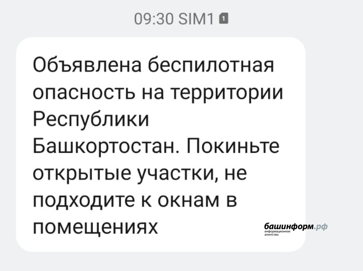 Жителей призывают избегать нахождения на открытых пространствах и держаться подальше от окон внутри помещений. Утро 27 октября ознаменовалось объявлением угрозы беспилотников на территории Башкортостана, согласно сообщению на официальном ресурсе Государственного комитета Республики Башкортостан по чрезвычайным ситуациям. Жителей призывают избегать нахождения на открытых пространствах и держаться подальше от окон внутри помещений. Информационное предупреждение было отправлено посредством СМС-сообщений жителям региона. источник: https://www.bashinform.ru/news/social/2025-10-27/na-territorii-bashkirii-ob-yavlena-bespilotnaya-opasnost-4442170