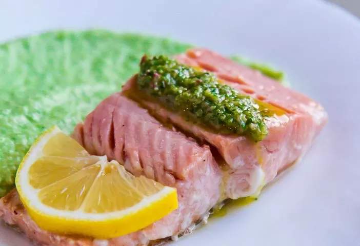 6. При отсутствии блендера измельчите твёрдые компоненты ножом, соедините с оливковым маслом и лимонным соком, приправьте солью и перцем, тщательно перемешайте.