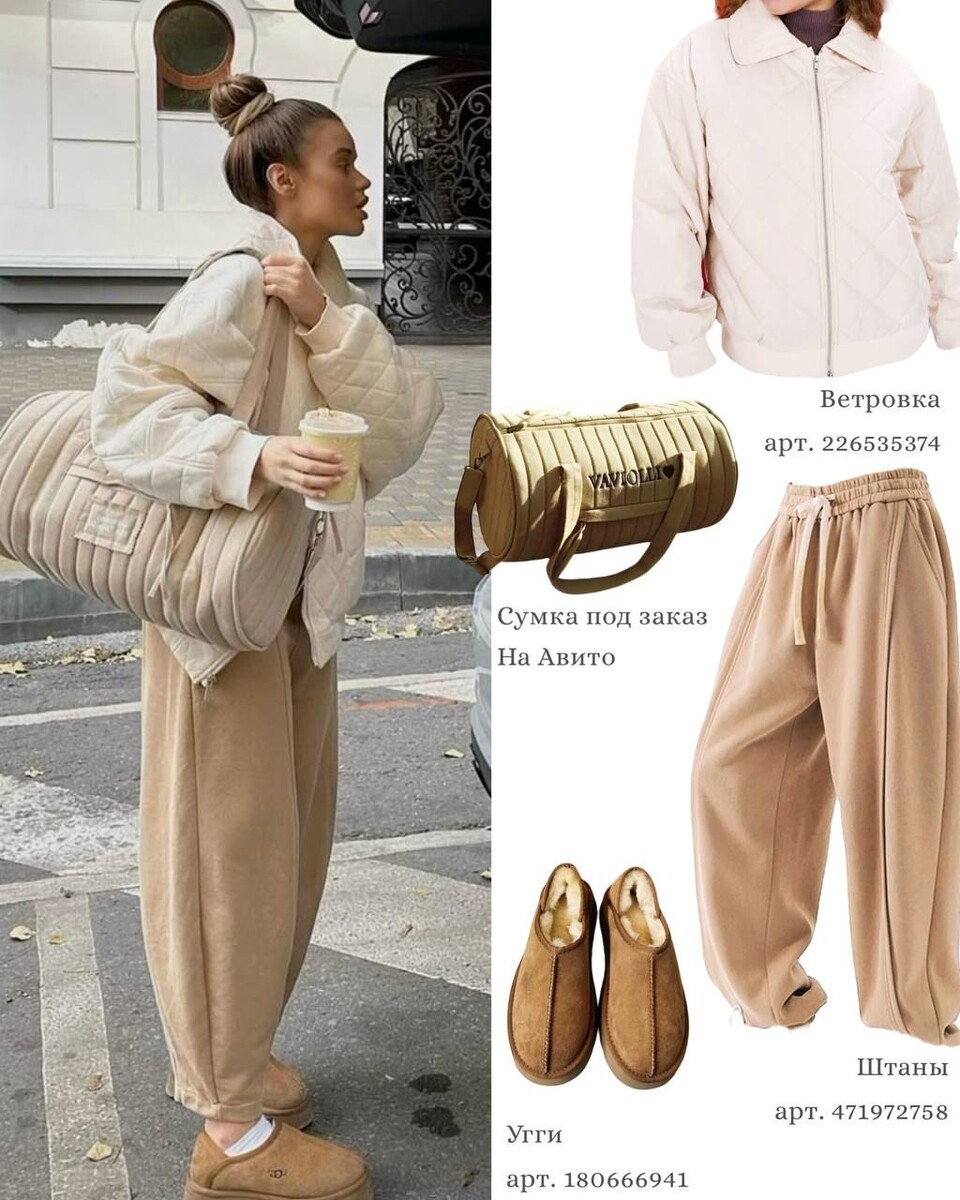 Осень — то самое время, когда хочется уюта, но без ощущения, что ты «спряталась в плед». Тёплые ткани, спокойные цвета, немного фактуры — и всё, уже чувствуешь себя красиво. Я собрала для вас с WB шесть простых образов, которые подойдут на каждый день: не требуют усилий, но выглядят стильно и со вкусом Перейти прямо к данному посту в Telegram с активными ссылками на вещи На фото — объёмные штаны цвета капучино, мягкая ветровка и уютные угги. Всё выполнено в спокойной гамме — беж, сливки, песок. Такой образ будто создан для тёплого кофе навынос и прогулки по парку. Он не перегружен деталями, но выглядит дорого за счёт мягких тканей и чистых линий. Совет: если боишься, что total beige будет «сливаться», добавь одну деталь чуть темнее — например, карамельную сумку или шарф. Это создаст глубину и соберёт весь образ. Перейти прямо к данному посту в Telegram с активными ссылками на вещи Здесь сочетаются базовые белые джинсы и шоколадный лонгслив с открытыми плечами. Просто, но очень женствен