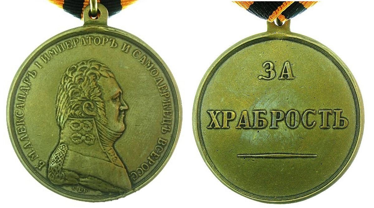 Медаль «За храбрость», учреждённая в 1807 году, предназначалась для награждения воинов иррегулярных войск и военизированных формирований (казачьих, ополченческих, конно-иррегулярных, милицейских, полицейских, охранных, сторожевых), не имеющих офицерских и классных чинов, за отличия в боевых действиях, а также за подвиги, проявленные в схватках с нарушителями общественного порядка и хищными зверями, как в военное, так и в мирное время.