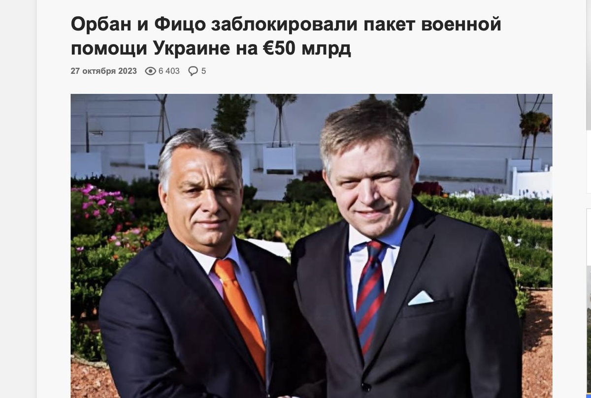 27 октября 2023 года Венгрия и Словакия на саммите ЕС заблокировали новый европейский пакет помощи Украине в 50 млрд евро. Хроника СВО. День за днём. Что происходило 27 октября в 2022, 2023 и 2024 годах