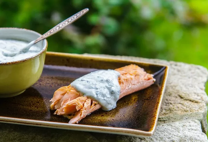 4. Доведите до однородности и подавайте к лососевым рыбам.