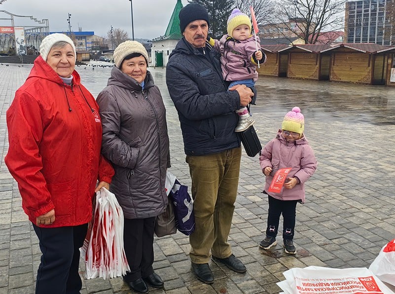 КИНЕШМА: ИНФОРМАЦИОННЫЕ ПИКЕТЫ, ПОСВЯЩЁННЫЕ 108-Й ГОДОВЩИНЕ ВЕЛИКОЙ ОКТЯБРЬСКОЙ СОЦИАЛИСТИЧЕСКОЙ РЕВОЛЮЦИИ В течение прошедших дней кинешемские коммунисты провели ряд информационных пикетов по микрорайонам города с раздачей главного информационного рупора Ивановского обкома КПРФ газеты «Слово Правды» и поздравительных открыток к 7 Ноября. Кинешемские коммунисты регулярно проводят информационные мероприятия в городе Кинешма, задача которых — не только выразить протест, но и распространит, как можно больше агитационной продукции КПРФ, донести информацию, разъясняющую сегодняшнюю политическую ситуация в стране, области, городе. По мнению Светланы Тихомировой – помощника депутата Ивановской областной Думы, секретаря Кинешемского горкома КПРФ, именно работа на улице, раздача поздравительных буклетов «из рук в руки» — наиболее действенная форма агитации в сегодняшних условиях. Кинешемский горком КПРФ