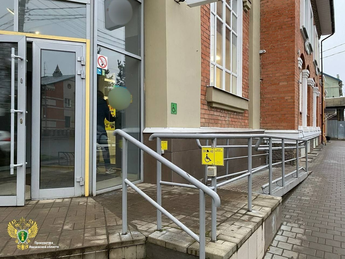 В Шуе инвалид сломал ребро на входе в банк Этим летом шуянин, инвалид 2 группы, страдающий заболеваниями опорно-двигательной системы, упал на лестнице при входе в банк и сломал ребро. Поручней и средств передвижения для инвалидов в здании не было. Прокуратура обратилась в суд, после решения которого собственник здания выплатил мужчине моральную компенсацию, а также оборудовал вход в банк поручнем и пандусом. Фото: прокуратура Ивановской области